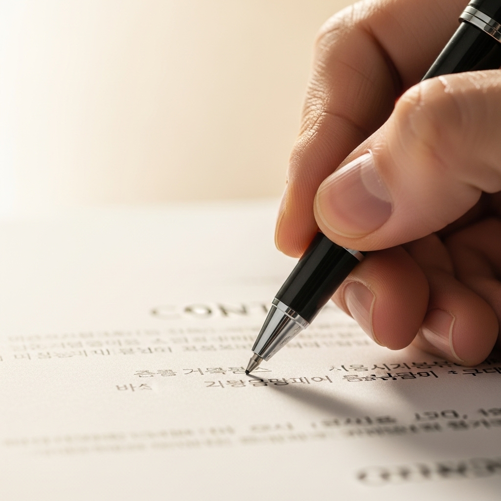 - 글자 수 명시 (선택 사항): 수정된 글자 수(예: '〇〇자 삭제', '〇〇자 가필')를 계약서 여백에 기재하면 더욱 명확해집니다.